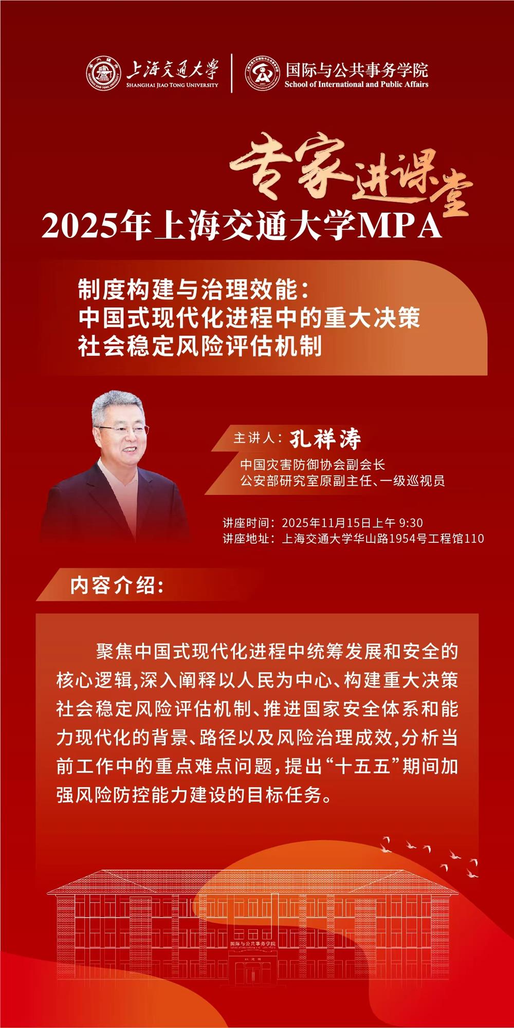 【讲座预告】2025年上海交通大学MPA专家进课堂讲座——孔祥涛
