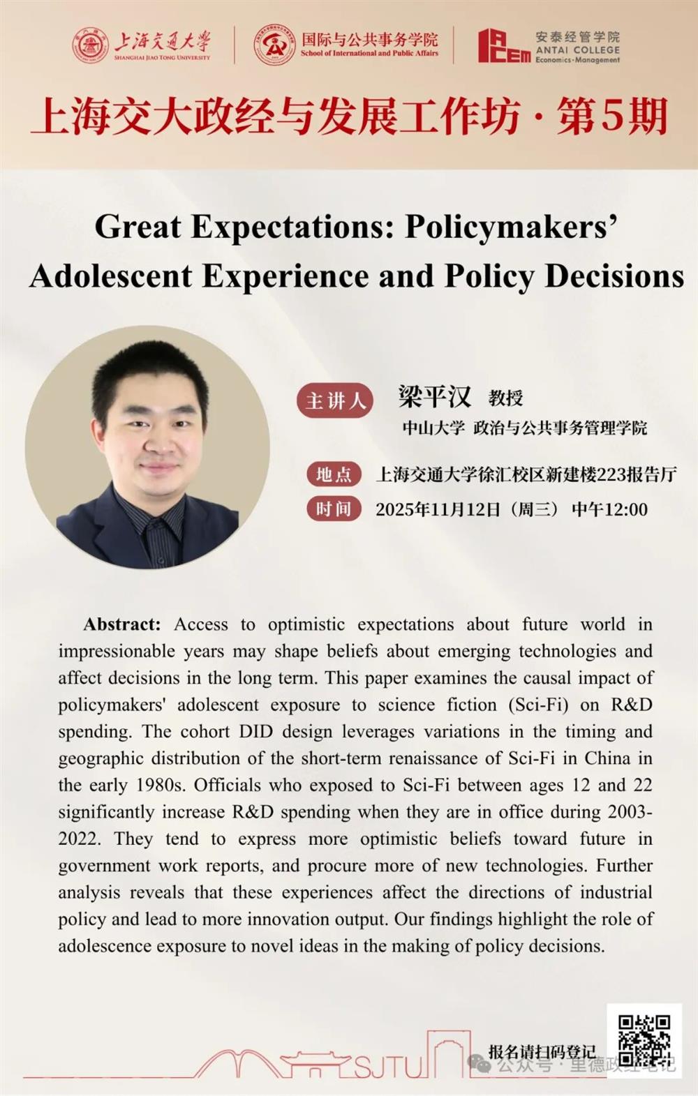 上海交大政经/发展工作坊预告 | 第5期:梁平汉(中山大学)
