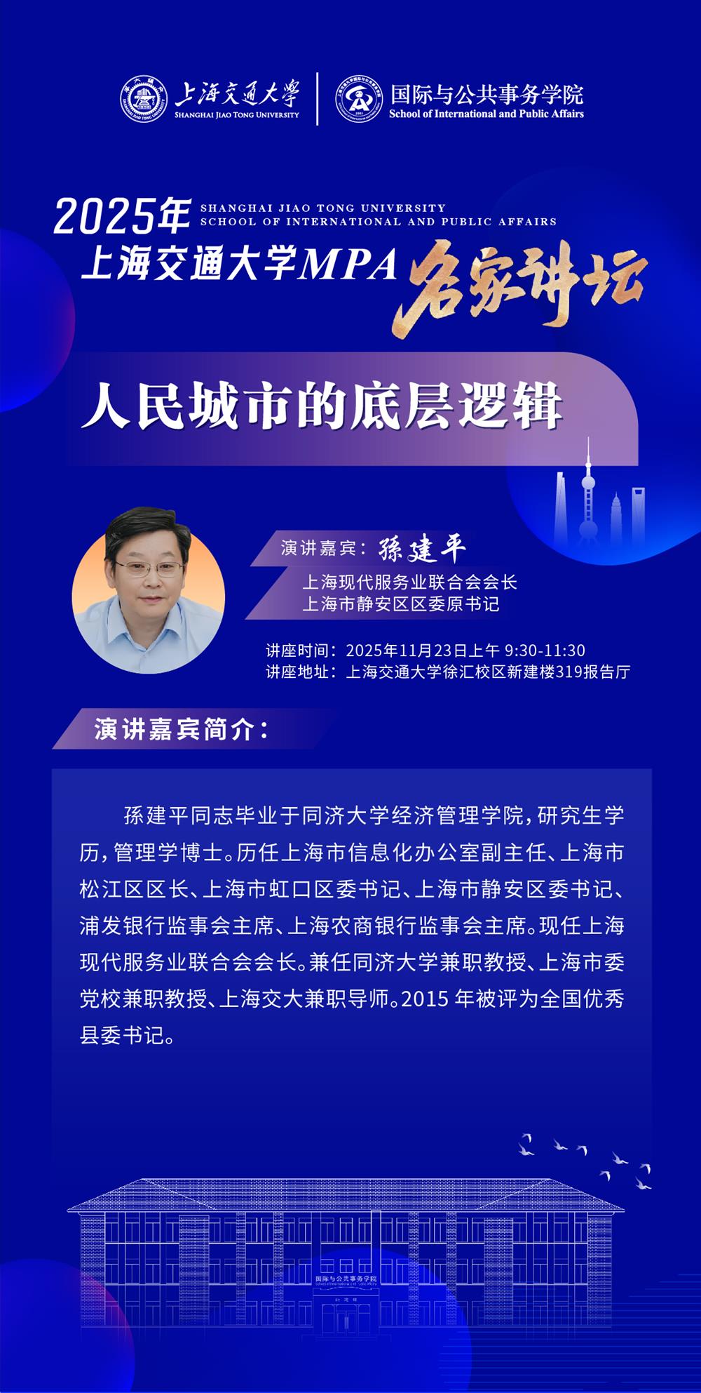 【讲座预告】2025年上海交通大学MPA名家讲坛系列讲座——孙建平