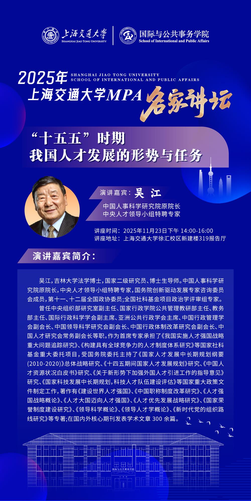 【讲座预告】2025年上海交通大学MPA名家讲坛系列讲座——吴江