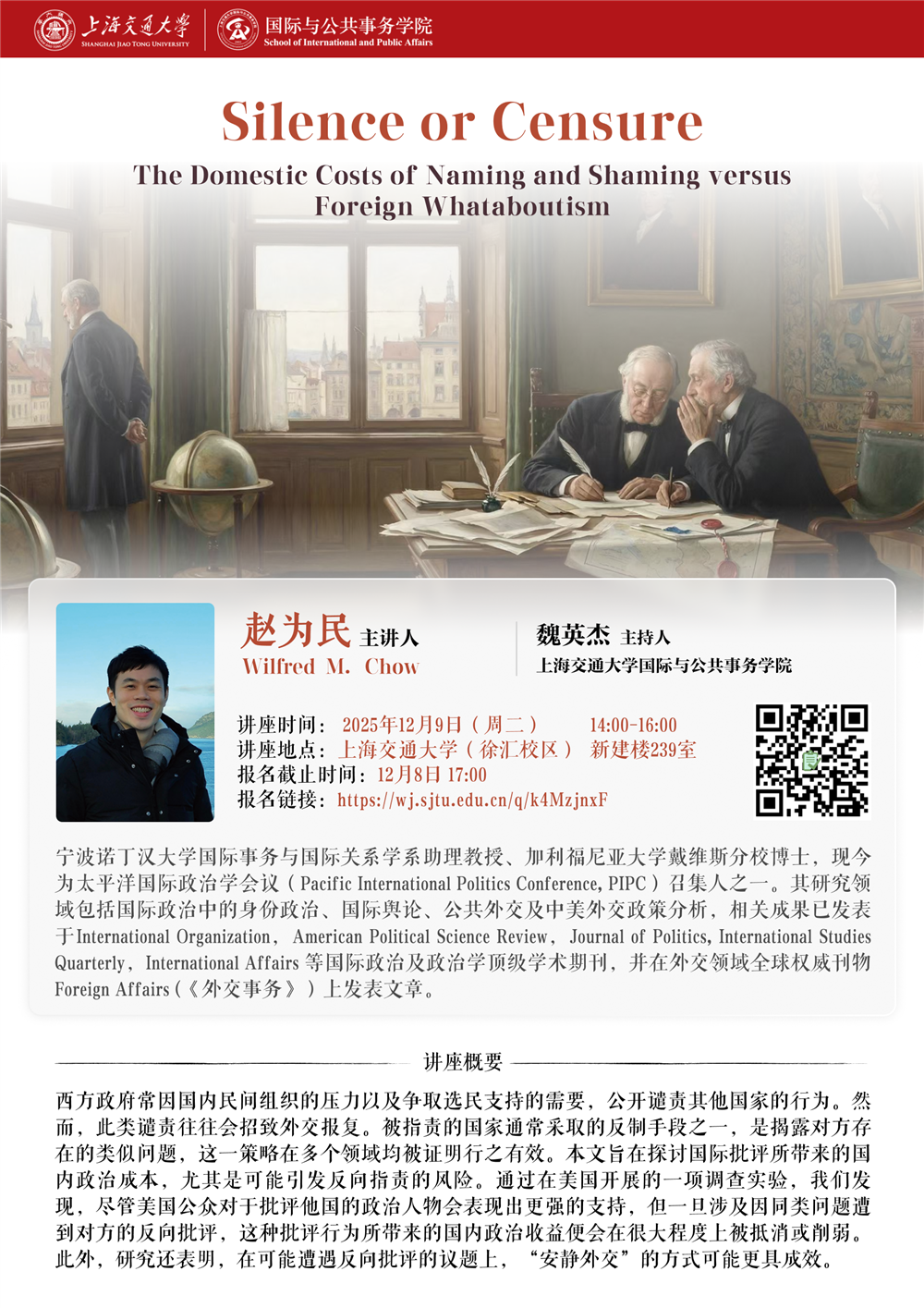 讲座预告 | Wilfred M. Chow 赵为民:Silence or Censure