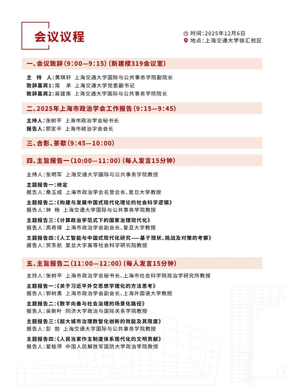 会议议程 | 2025年上海市政治学会学术年会暨数智时代的中国式政治现代化学术研讨会